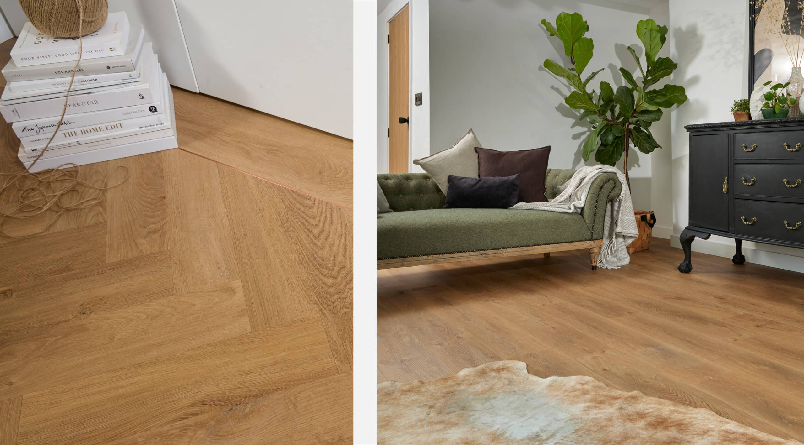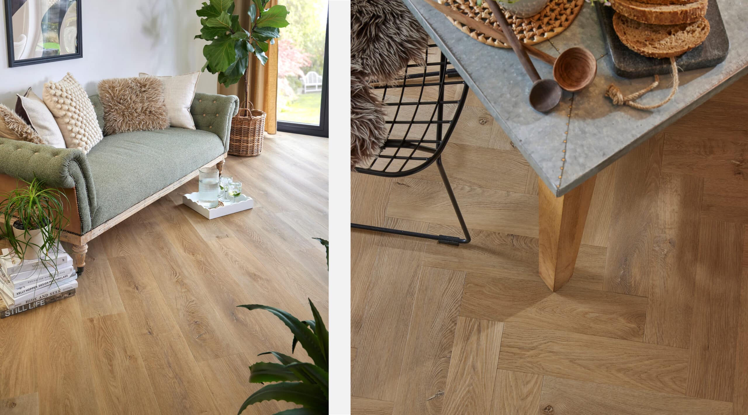 Designed to be soft and subtly warm, Hardwick was chosen for its understated honey hue, authentic grain and gorgeous creamy highlights. Perfect for creating that cosy vibes. View Hardwick.